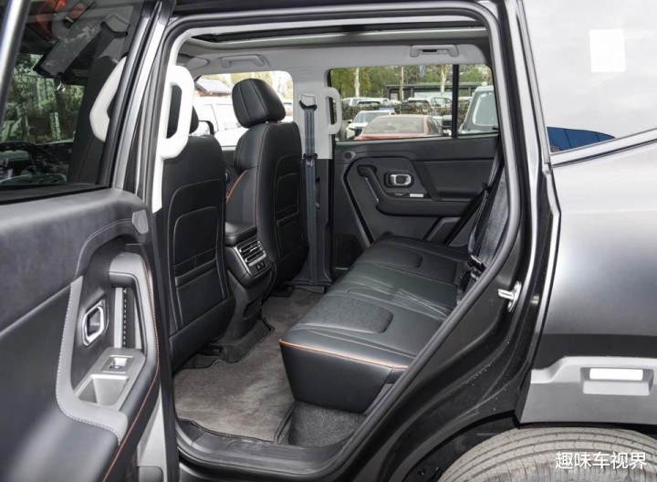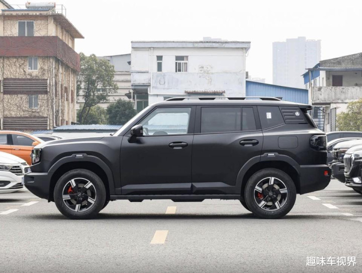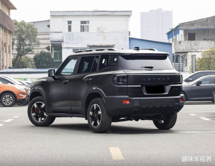 车身侧面线条干净利落,发动机盖上的筋线、强化的轮眉的设计,进一步凸显硬朗气场,搭配红色刹车卡钳与黑化轮毂,与骊影黑哑光车漆形成鲜明对比,强化运动属性;悬浮式车顶、脚踏板等元素的加入,既提升了实用性,又丰富了视觉层次。车尾与车头呼应,配备方形轮廓车灯,中央镶嵌捷途英文标识,下部是粗壮的保险杠,整体造型沉稳大气,兼顾硬派与精致。
